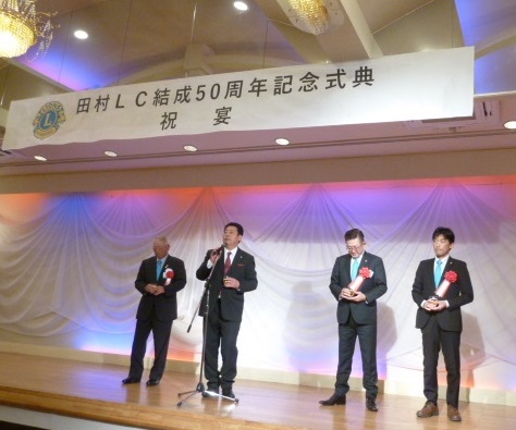 奉仕活動に取り組みたい」などと挨拶をし、L門馬弘ガバナー、田村市長白石高司様、ほか多くの方に祝辞を頂いた。
