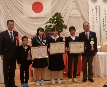 「交通安全標語コンクール」「国際平和ポスターコンテスト」の各優秀賞に選ばれた児童らも表彰し、賞状と記念品が渡された。