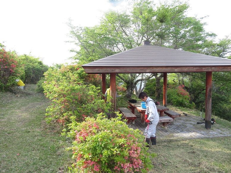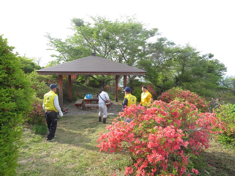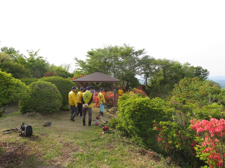 山開き(5/18)前に、登山客に気持ちよく登山してもらおうと、会員14名で「片曽根山山頂公園ライオンズ の森」周辺の清掃とドウダンつつじ・山ツツジの整備を行いました。 当クラブが47年間、年2回 行っている継続事業です。 ドウダンつつじ・山ツツジがあり、市民の憩いの場となっています。 |