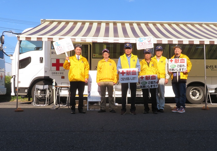 田村市よりの要請を受け、船引町のリオンドール船引店 駐車場にて、午後2時より「献血運動啓発活動」を会員 6名で行いました。 |
